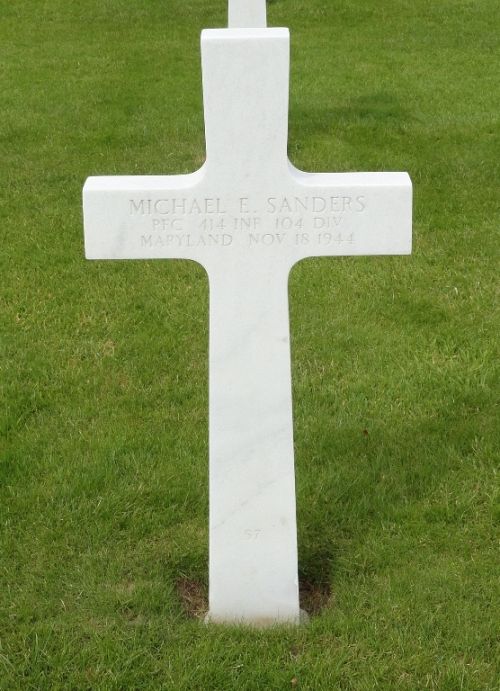 Pfc Michael E. Sanders worked in a metal factory before he enlisted in Baltimore, Maryland on 9 January 1943.Source of information: Raf Dyckmans, Carla Mans, www.abmc.gov, www.wwiimemorial.com, www.archives.gov - WWII Enlistment Record, www.ancestry.com - Headstone and Interment Record / U.S. WWII Draft Cards Young Men