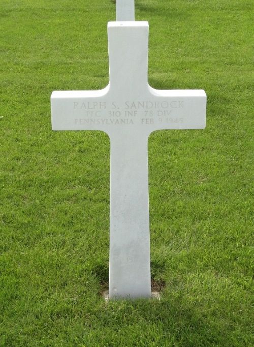 Pfc Ralph S. Sandrock enlisted in Pittsburgh, Pennsylvania, on 17 July 1940.He was first buried at Block NNN, Row 7, Grave 129.