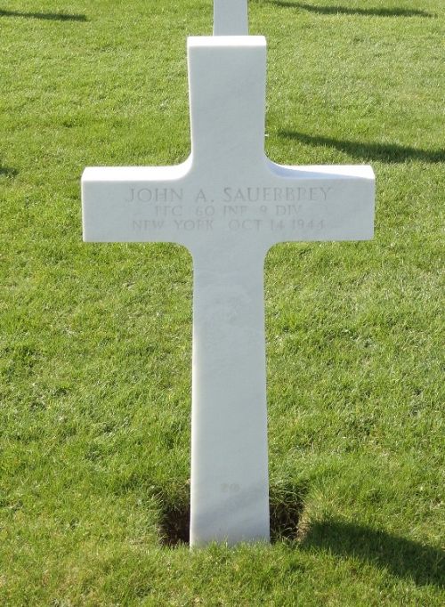 Pfc John A. Sauerbrey was a bellman before he enlisted in New York City, New York on 7 May 1943.Source of information: Peter Schouteten, Carla Mans, www.abmc.gov, www.wwiimemorial.com, www.archives.gov - WWII Enlistment Record, www.ancestry.com - Headstone and Interment Record / 1930 Census / New York U.S. Birth Index, http://9thinfantrydivision.net