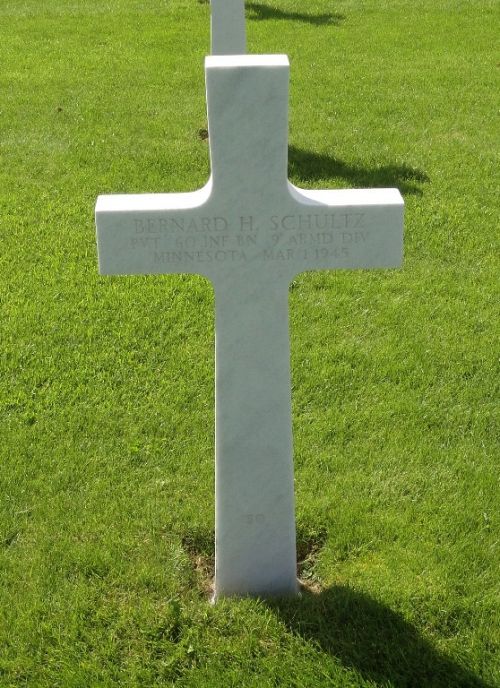 He was first buried at Temporary American Military Cemetery Henri-Chapelle, Belgium Block WWW, Row 2, Grave 27.