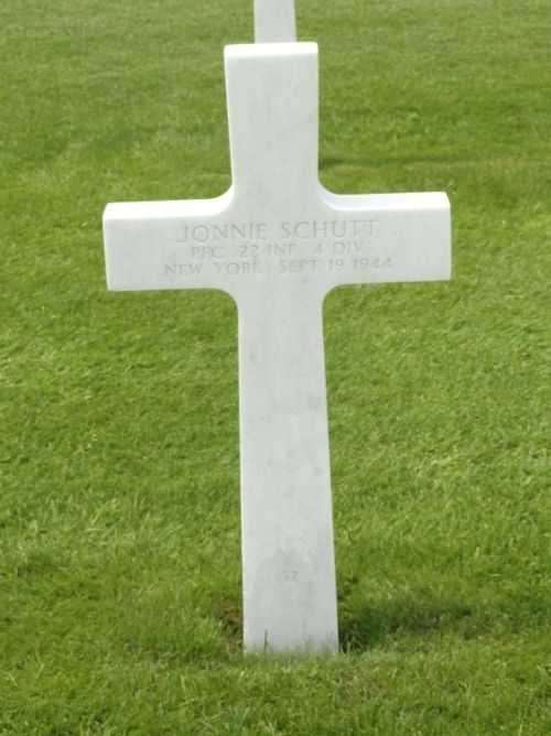 Pfc Jonnie Schutt was first buried at the Temporary American Military Cemetery of Fosse, Belgium.Source of information: Danny van der Groen, Peter Schouteten, www.abmc.gov, www.wwiimemorial.com, www.ancestry.com - U.S., Headstone and Interment Records for U.S. Military Cemeteries on Foreign Soil