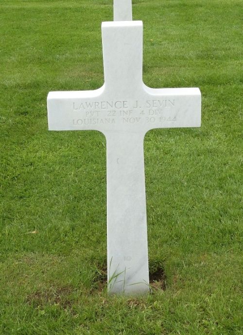 Pvt Lawrence J. Sevin enlisted at Camp Beauregard, Louisiana on 29 May 1944.Source of information: Danny van der Groen, Peter Schouteten, Carla Mans, www.abmc.gov, www.wwiimemorial.com, www.archives.gov – WWII Enlistment Record, www.ancestry.com - Headstone and Interment Record / U.S. WWII Draft Cards Young Men / Shane Matheme Family Tree / 1930 Census