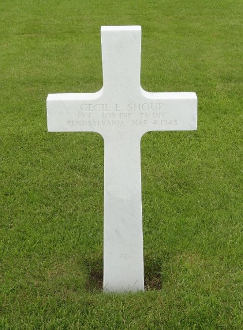 Pvt Cecil L. Shoup enlisted in Pittsburgh, Pennsylvania on 24 January 1944.Pvt Cecil L. Shoup was first buried at Temporary American Military Cemetery Henri-Chapelle, Belgium Block A-4, Row 4, Grave 77.