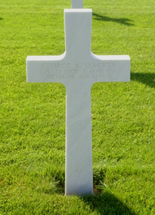 Cpl George A. Slackta was an attendant before he enlisted at Fort Custer, Michigan on 2 February 1942.Source of information: Peter Schouteten, Sheree Dowdle, www.abmc.gov, www.wwiimemorial.com, www.archives.gov – WWII Enlistment Record, www.ancestry.com - Headstone and Interment Record / 1940 Census / U.S. WWII Draft Cards Young Men