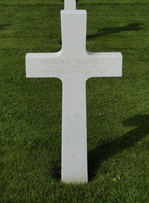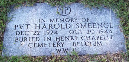 Pvt Harold Smeenge is remembered at the Pilgrim Home Cemetery Holland, Ottawa County, Michigan.He attended Holland High School before he was employed by Hart and Cooley Co. He was inducted 30 December 1943.