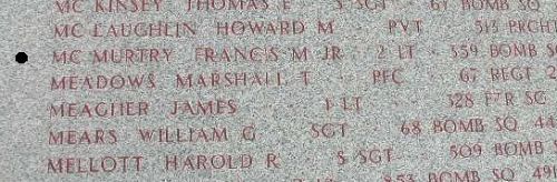 2nd Lt Francis M. Mc Murtry Jr. attended college before he volunteered for the Air Corps of the Army of the United States on 19 May 1942.On the way back, the airplane was attacked by enemy fighters. It ditsched in the English Channel, off the coast of Dieppe, France.