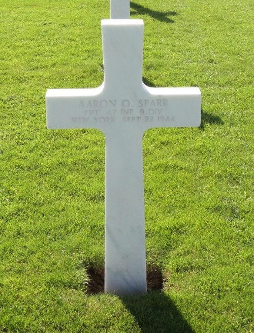 Pvt Aaron O. Sparr was a clerk before he enlisted in New York City, New York on 22 December 1943.He was first buried at the Temporary American Military Cemetery of Fosse, Belgium.