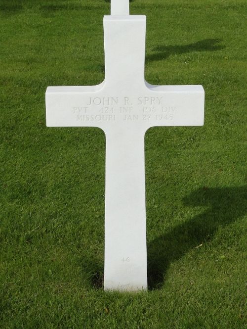 Pvt John R. Spry enlisted in Jefferson Barracks, Missouri on 20 June 1944.He attended high school for 3 years.