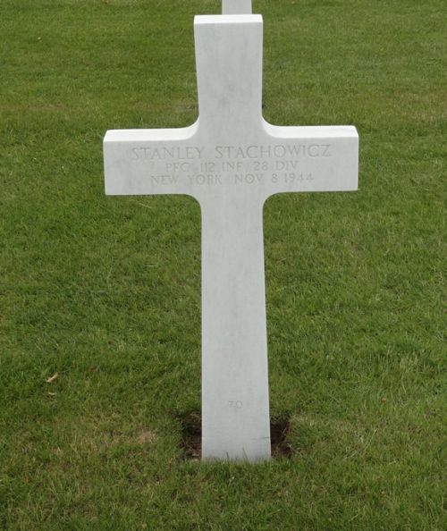 Pfc Stanley Stachowicz enlisted in New York City, New York on 7 December 1943. Source of information: André Koch, Carla Mans, www.abmc.gov, www.wwiimemorial.com, www.archives.gov – WWII Enlistment Record, www.ancestry.com - 1940 Census / Bradley Family Tree / Headstone and Interment Records / U.S. WWII Draft Cards Young Men, www.findagrave.com, - Mitchell Sanders, https://www.ibiblio.org/hyperwar/USA/USA-SS-Three/USA-SS-Three-III-6.html