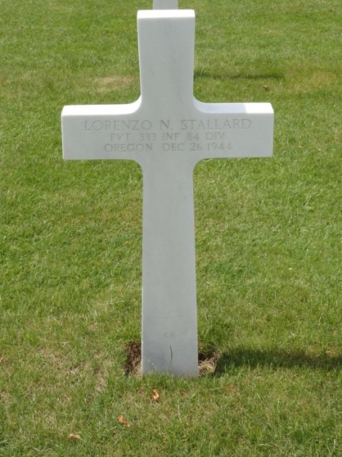 Pvt Lorenzo N. Stallard enlisted at Fort Lewis, Washington on 26 February 1944 and was sent overseas on 10 August 1944.He was first buried at the Temporary American Military Cemetery of Fosse, Belgium.