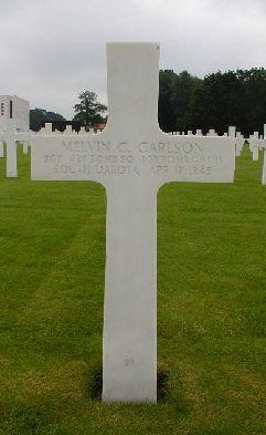 Melvin Carlson was raised on a farm south of Sisseton, South Dakota. He and his siblings went to a one-room school, where all eight grades were taught. His sister, Florence Shurtleff, remembers that because it was during the Depression, all of their toys were homemade, they had many books that they read over and over, and they had three jigsaw puzzles that they put together a lot. Melvin’s chores were bringing in wood and corncobs for the firestove. He also had to feed the farm animals, such as cows, horses, and pigs. He and his siblings also herded the cows, which was not always an easy task.He volunteered for the Air Corps of the Army of the United States on 16 October 1943 at Fort Snelling, Minnesota and was sent overseas on 10 February 1945.
