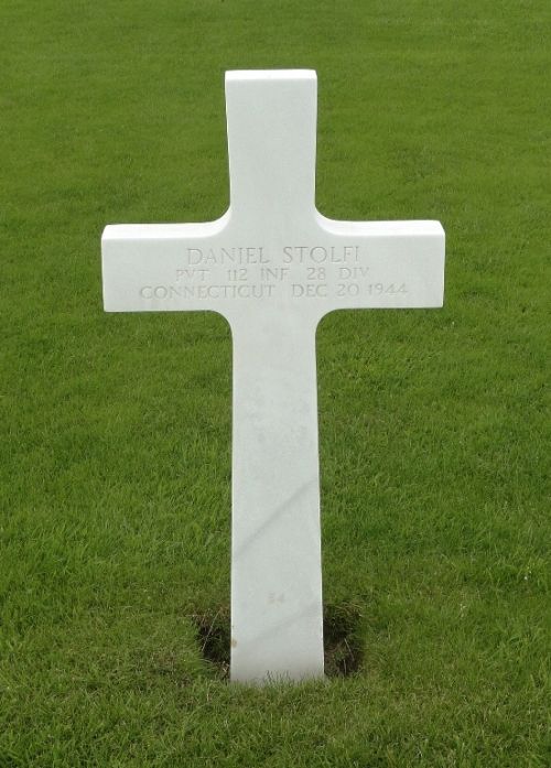Pvt Daniel Stolfi enlisted at Fort Devens, Massachusetts on 4 April 1944.Source of information: André Koch, Carla Mans, www.abmc.gov, www.wwiimemorial.com, www.archives.gov – WWII Enlistment Record, www.ancestry.com - 1930/1940 Census / Bridsong Priestley Family Tree / Headstone and Interment Record / U.S. WWII Draft Cards Young Men