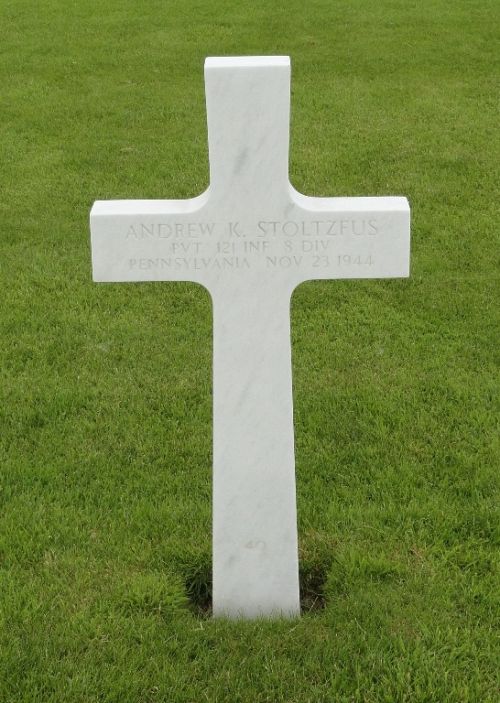 Pvt Andrew K. Stoltzfus worked on a farm.He enlisted in Harrisburg, Pennsylvania on 13 November 1943. He was sent overseas in June 1944.