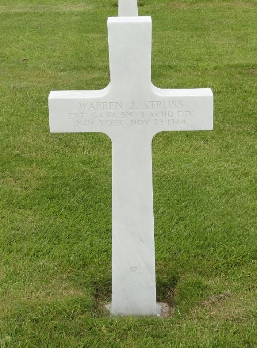 Pvt Warren J. Struss was first buried at the Temporary American Military Cemetery Henri-Chapelle, Belgium Block X, Row 10, Grave 185.