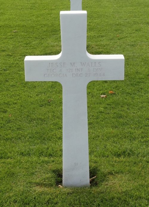 T/4 Jesse M. Walls was a carpenter when he joined the National Guard in Macon, Georgia on 16 September 1940.Source of information: Raf Dyckmans, Peter Schouteten, www.abmc.gov, www.wwiimemorial.com, www.archives.gov – WWII