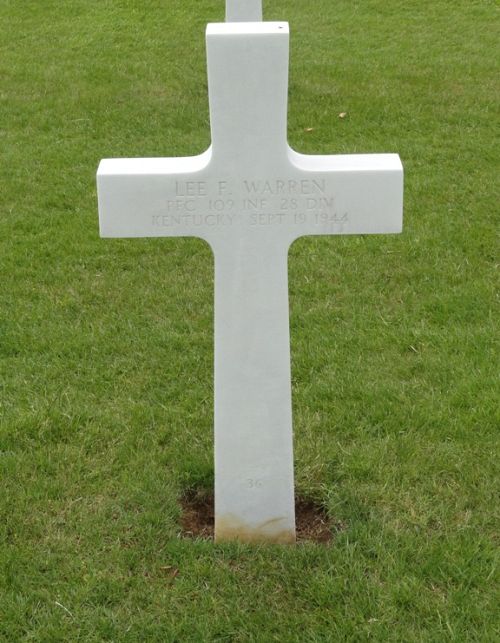 Pfc Lee F. Warren enlisted at Fort Benjamin Harrison, Indiana on 6 March 1942.Source of information: André Koch, www.abmc.gov, www.wwiimemorial.com, www.archives.gov - WWII Enlistment Record, www.ancestry.com - 1920/1930/1940 Census / Russell Tree / U.S., Headstone and Interment Records for U.S. Military Cemeteries on Foreign Soil / Kentucky Birth Index 1911-1999