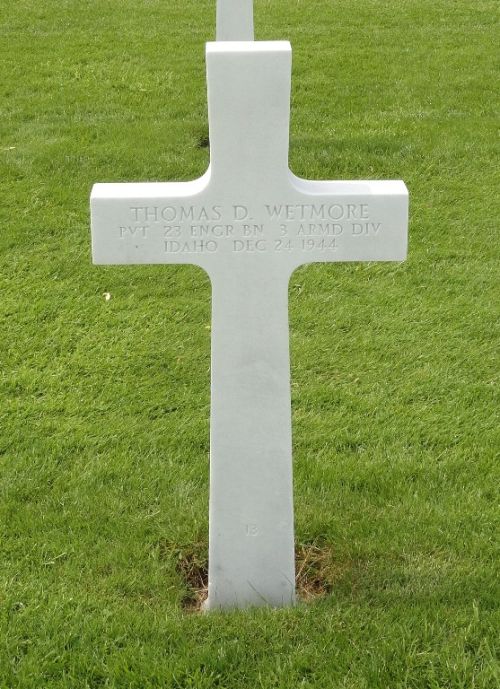 Pvt Thomas D. Wetmore enlisted in Spokane, Washington on 17 February 1943 and was a lumberman.Source of information: Peter Schouteten, Carla Mans, www.abmc.gov, www.wwiimemorial.com, www.archives.gov – WWII Enlistment Record, www.ancestry.com - Headstone and Interment Record / U.S. WWII Draft Cards Young Men / 1940 Census, www.findagrave.com - NWPioneer