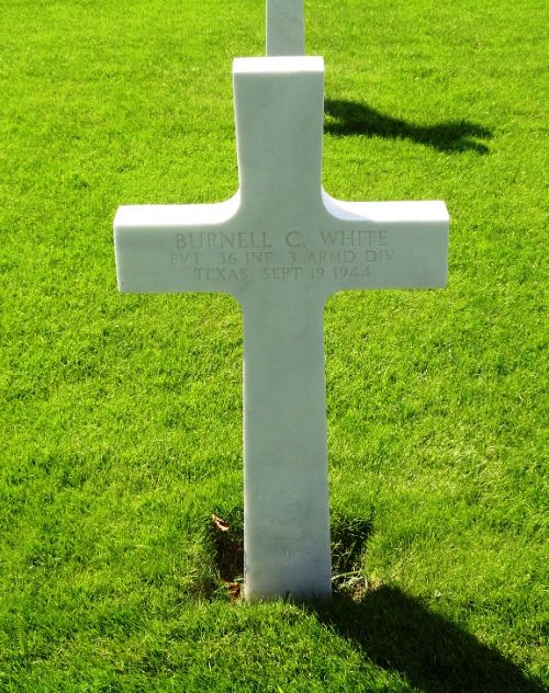 Pvt Burnell C. White enlisted in Dallas, Texas on 18 June 1941.He was first buried at the Temporary American Military Cemetery of Fosse, Belgium.