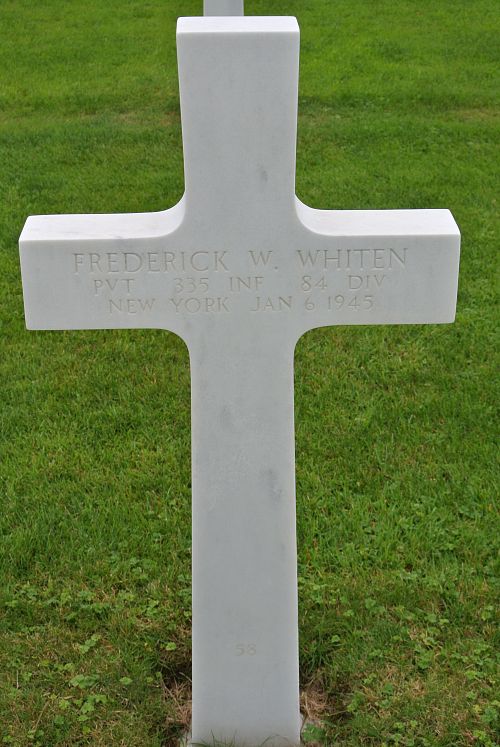 Pvt Frederick W. Whiten enlisted at Camp Upton Yaphank, New York on 19 June 1944.His initial burial took place on Fosse Cemetery, Namur, Belgium.