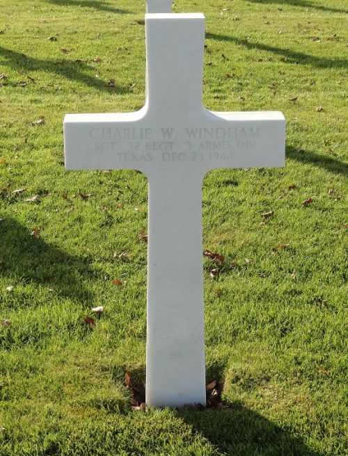 Sgt Charlie W. Windham attended high school for 3 years. He volunteered for the Army of the United States in Dallas, Texas on 28 January 1942.Source of information: Raf Dyckmans, Peter Schouteten, www.abmc.gov, www.wwiimemorial.com, www.archives.gov – WWII Enlistment Record, www.ancestry.com - Headstone and Interment Record / Bledsoe Family Tree / 1920/1930 Census