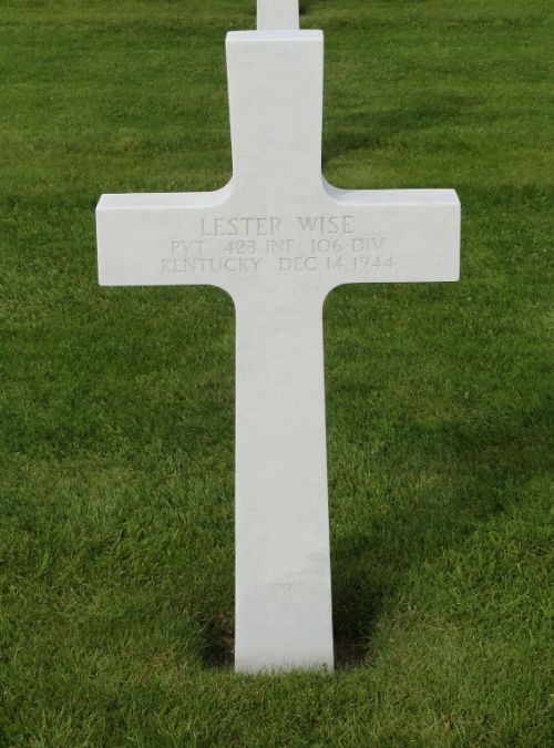 Pvt Lester Wise enlisted in Louisville, Kentucky on 8 November 1943. Overseas since October, he was formerly employed by the Kentucky Macaroni Company.Source of information: Peter Schouteten, Astrid van Erp, Sheree Dowdle, www.abmc.gov, www.findagrave.com – Nan Macon-Morris, www.wwiimemorial.com, www.archives.gov – WWII Enlistment Record, www.ancestry.com - Headstone and Interment Record / Nan Macon’s Family tree, http://106thinfdivassn.org, www.newspapers.com - The Courier-Journal