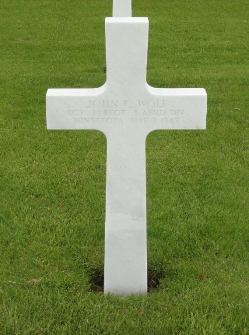 Sgt John F. Wolf was first buried at Temporary American Military Cemetery Henri-Chapelle, Belgium Block A-4, Row 6, Grave 115.