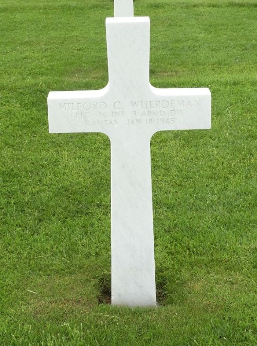 Pfc Milford G. Wuerdeman worked on a farm before he enlisted at Fort Leavenworth, Kansas on 15 december 1943.Source of information: Peter Schouteten, www.abmc.gov, www.wwiimemorial.com, www.archives.gov – WWII Enlistment Record, www.ancestry.com - U.S., Headstone and Interment Records for U.S. Military Cemeteries on Foreign Soil / 1930 Census