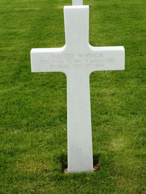 T/4 Walter Wyrick was first buried at Temporary American Military Cemetery Fosse, Belgium Block J, Row 4, Grave 75.Source of information: Peter Schouteten, Carla Mans, www.abmc.gov, www.wwiimemorial.com, www.archives.gov – WWII Enlistment Record, www.ancestry.com - Headstone and Interment Record / U.S. WWII Draft Cards Young Men / 1920/1930 Census / 1925 Census