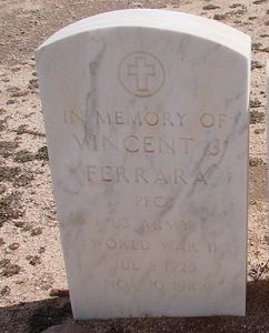 Pfc Vincent J. Ferrara was born as Vincenzo Ferrara according to his birth record.He was killed in action on 14 November 1944 and was officially declared death on 15 November 1945.