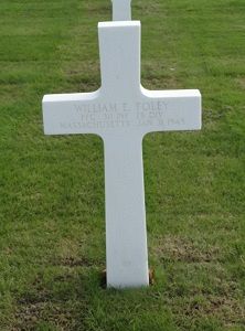 He was awarded the Bronze Star Medal posthumously for his actions on the day of his death. The citation cited: For meritorious service in connection with military operations against the enemy on 31 Janaury 1945 In the vicinity of Kesternich, Germany. To establish contact between his platoon and the rest of the company, Pfc Foley volunteered to cross 75 yards of open ground that was receiving intense concentration of automatic and small arms fire. With complete disregard for his personal safety he repeatedly crossed the open ground during the attack, delivering vital messages of great importance to the coordinate operations of his company. During a return trip he was fatally wounded.