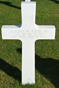 Nearing Höllrich in the black of night, the column was ambushed by German veteran soldiers of he German Infantry Combat School. The tank on which Lt Geer was riding was hit by a shell from a Tiger tank, destroying it and killing several men who were riding on it, including Lt Geer.