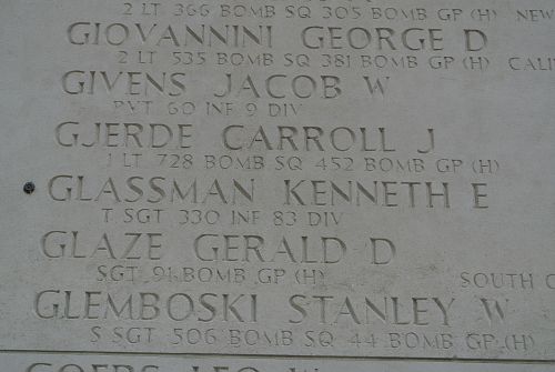 His name is inscribed on the Walls of the Missing at the American Military Cemetery of Margraten. His remains were discovered years later and he was given a final resting place at the American Military Cemetery of Ardennes.