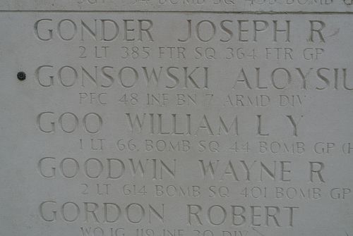 1st Lt William L. Y. Goo lived in Honolulu at St. Mary's home until he was 15 and in 1935 went to Washington with Rev. Bailey, as his ward. He graduated from Port Angeles High School in 1937 and attended the University of Washington for three years.He joined the Air Corps of the U.S. Army Reserve in Seattle, Washington, on 14 December 1942 and graduated from Hondo Field, Texas in 1944.