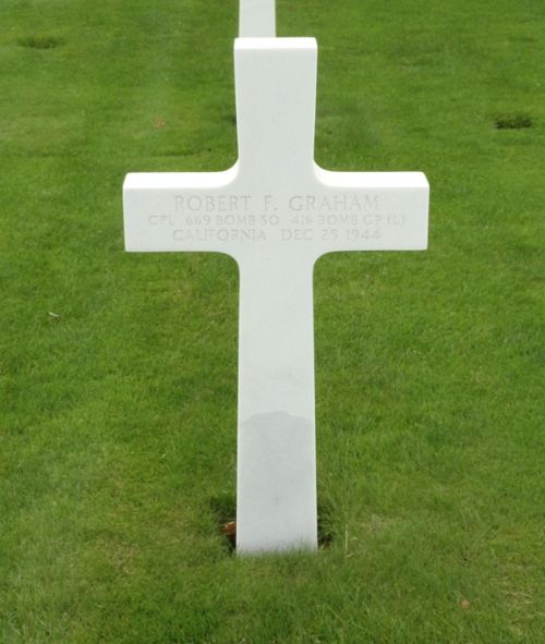 A graduate of Colton Union High school with class of 1939, Corporal Graham was employed at the California Portland Cement Co. plant in Colton, and at the Lockheed aircraft plant in Burbank.He was inducted in Santa Ana, California on 15 March 1943 and was sent overseas in August, 1943. Corporal Graham's last station before being sent overseas was at Columbia, S.C. He trained at Santa Ana Army Air Base, Denver and at a base in Florida before being sent to South Carolina.