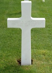 Pfc Harold A. Greathouse enlisted in Fort Thomas, Newport, Kentucky on 27 May 1944.Killed in Patton's Division. He was blown up while saving his buddies.