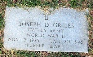 Pvt Joseph D. Griles enlisted in Fort George G. Meade, Maryland on 30 March 1944.Source of information: Peter Schouteten, www.abmc.gov, www.wwiimemorial.com, www.archives.gov, www.findagrave.com - Christine Phelps, www.ancestry.com - Supan Family Tree / 1940 Census / WWII Enlistment Record