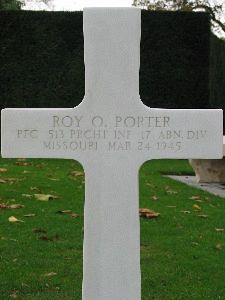 Pfc Roy O. Porter enlisted at Jefferson Barracks, Missouri on 22 December 1943.Source of information: Terry Hirsch, www.ancestry.com - Headstone and Interment Record, United States 1940 Census, www.fold3.com - WWII Draft Cards