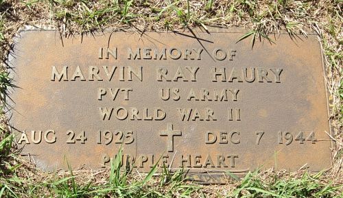 Pvt Marvin R. Haury is remembered at Fairview Cemetery, Putnam, Dewy County, Oklahoma.
