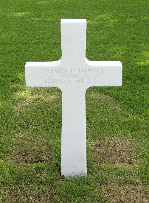 Sgt Hawley was awarded the Silver Star Medal posthumously for his actions on the day of his death. The citation reads: On 2 April 1945 in Germany, while leading a patrol against a farmhouse that contained some enemy troops, Sgt Hawley with complete disregard for his personal safety, stood in the open and attempted to negotiate their surrender. While thus exposed the enemy troops began to deploy and Sergeant Hawley unhesitatingly gave the order for his patrol to open fire. Throughout this action, he displayed outstanding initiative and coolness under fire until the enemy had been overcome. During this heroic act Sgt Hawley was killed by enemy artillery.Source of information: Peter Schouteten, Raf Dyckmans, Gary Bettcher, www.abmc.gov, www.wwiimemorial.com, www.findagrave.com, www.ancestry.com – 1930 Census, http://83rdinfdivdocs.org