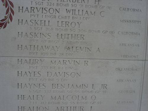 Pvt Davison Hayes worked on a farm before he enlisted in Little Rock, Arkansas on 10 December 1943.He was taken prisoner on 6 September 1944 and died in Stalag VI-G a few days later.