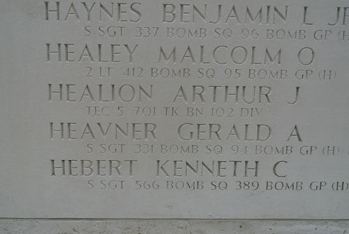 T/5 Arthur J. Healion graduated from Manual Training High School. He was employed by the New York Edison Company.He enlisted in New York City, New York on 15 February 1943 and was sent overseas in April 1944.