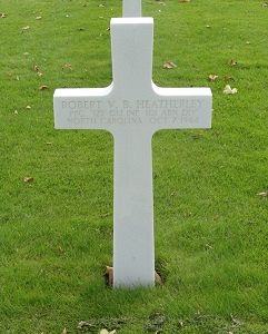 Pfc Robert V. Heatherley enlisted at Fort Bragg, North Carolina on 11 March 1942. At the time of his enlistment, he was working on a farm.Pfc Robert V. Heatherley was first buried at the Temporary American Military Cemetery of Molenhoek, the Netherlands.