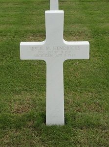Pfc Hendricks first worked for the WPA and then Ford Motor Company. He enlisted at Fort Sheridan, Illinois on 11 April 1944.Leslie Hendricks was the stepson of Anthony Hendricks. According to a 1930 census his name was Leslie M. Greenwalt.