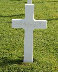 Pvt Charles S. Hodgins joined the Regular Army at Fort Bragg, North Carolina on 17 May 1939. He was stationed at Fort Benning with an armored unit with the rank of master sergeant, and then asked for his transfer to paratrooper training, losing his rank and returning to private.He was a veteran of the invasion of Sicily, the Anzio bridgehead, where he was wounded a first time and the invasion of Normandy.