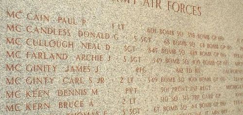 S/Sgt Archie J. McFarland enlisted in Kalamazoo, Michigan on 6 January 1943. He attended high school for 4 years.The crew was on their first mission.