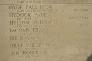 Pfc Paul Hydock enlisted at Fort George G. Meade, Maryland on 3 February 1942. He was sent overseas in July 1944.He was reported missing in action on 18 October 1944 when his observation post was overrun by the Germans and was officially decleared death one day and one year after he was reported missing in action.