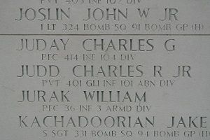 Pvt Charles R. Judd Jr. graduated from Woodward High School in Cincinnati and was employed as a bookkeeper at the Cincinnati Machine Supply Company.He enlisted at Fort Thomas, Kentucky on 20 March 1943. He went overseas in July 1944.