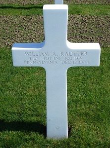 1st Lt William A. Kautter graduated from Shamokin Area High School with the class of 1939 and was employed as a loomfixer by the Shamokin Woolen Mills.He enlisted in Harrisburg, Pennsylvania on 21 July 1942 and received infantry basic training at Camp Forrest, Tennessee, after which he applied for officers candidate school. Upon his acceptance by the War Department he was sent to the Infantry school at Fort Benning, Georgia, where he was commissioned a second lieutenant in February 1943. Later he was transferred to Camp Swift, Texas where he was promoted to first lieutenant. He left for overseas duty in September 1944.