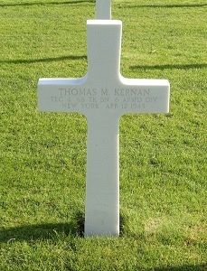 T/4 Thomas M. Kernan was a graduate of St. Mary's High School and was employed by the Mohian Market and later by Wickwire Brothers Inc.He enlisted in Buffalo, New York on 27 August 1941. He received his basic training at Fort Knox, Kentucky, and before going overseas was on maneuvers in California.
