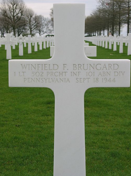 1st Lt Winfield F. Brungard was initially buried at the Temporary American Military Cemetery of Zon, The Netherlands.He was given his final resting place at Margraten on 20 December 1948.